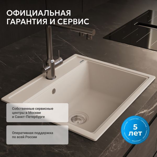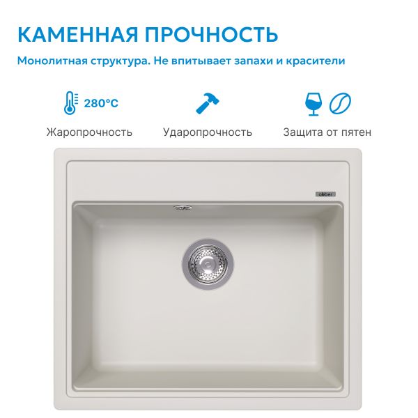 Кухонные мойки ABBER из кварцевого композита — это долговечность, надежность и простота в уходе. Белая кварцевая мойка 60х51х21,7см — неизменная и неустаревающая классика. Вы можете выбрать мойку с крылом или без. Чтобы очистить мойку, не нужно использовать какие-то специализированные средства. Кварцевая мойка не боится повреждений, не окрашиваются продуктами. Как натуральный камень, но лучше и дешевле!