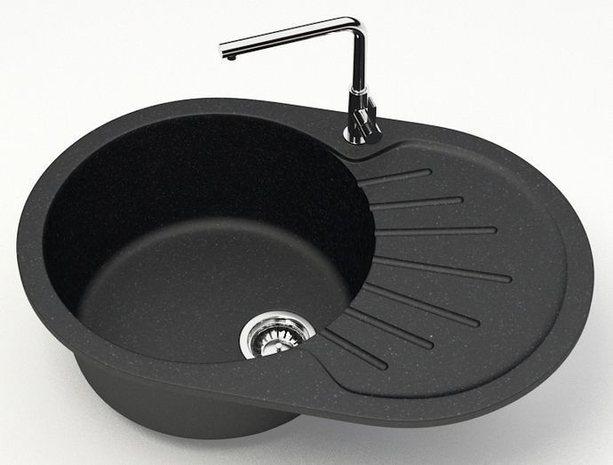 Кухонная мойка изготовлена из современных экологически чистых материалов, природного молотого кварца, мрамора или гранита с добавлением специальных пигментов и красителей.