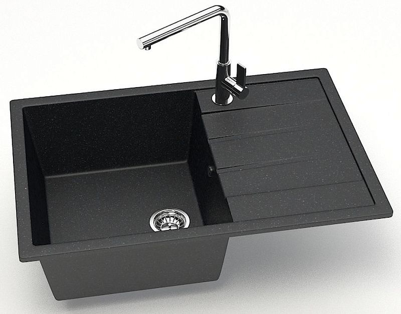 Кухонная мойка изготовлена из современных экологически чистых материалов, природного молотого кварца, мрамора или гранита с добавлением специальных пигментов и красителей.