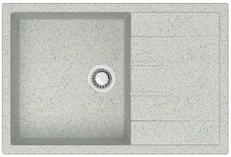 Кухонная мойка изготовлена из современных экологически чистых материалов, природного молотого кварца, мрамора или гранита с добавлением специальных пигментов и красителей.