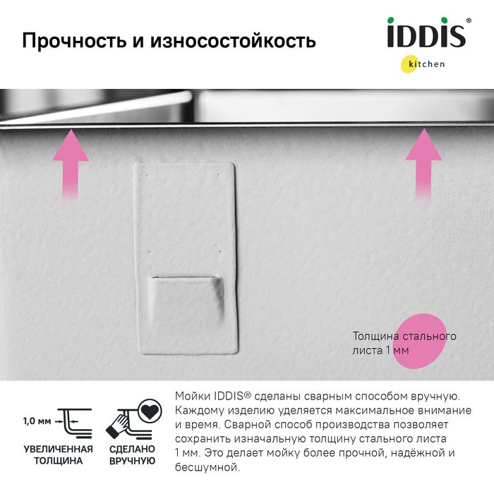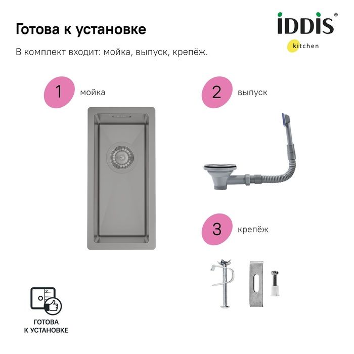 Идеально сочетается по цвету со смесителями IDDIS® ACEGMFFi05, GRAGM00i05, GRAGMFLi05. Гарантия на мойку – 10 лет, на выпуск – 1 год.