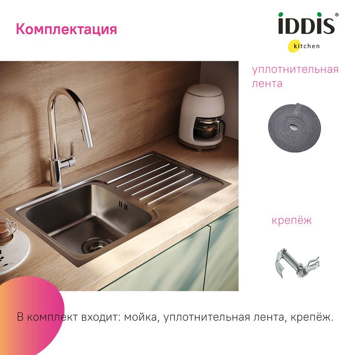Кухонная мойка IDDIS Sound SND78SDi77 78см сталь купить