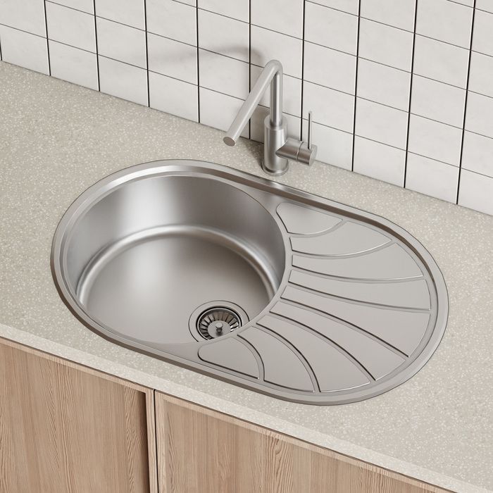 Мойка из качественной нержавеющей стали 304 толщиной 0,8 мм; сталь содержит 18% хрома и 8% никеля, что надежно защищает ее от коррозии. Стойкая к износу, выдерживает различные t, легко моется, долго служит. При правильном уходе надолго сохранит привлекательный внешний вид.