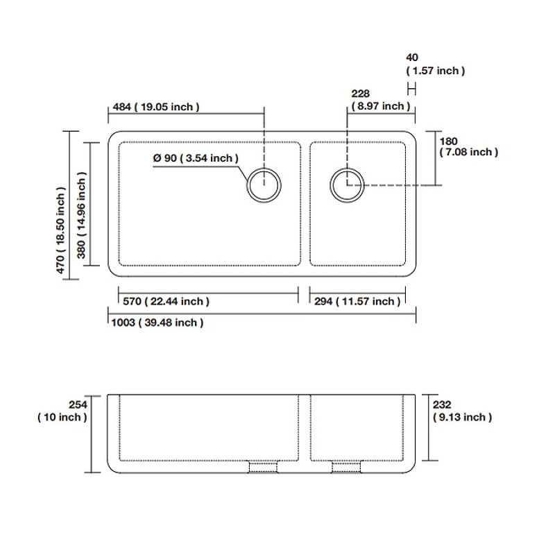 Размер мойки (ШхВхГ): 100.3x25.4x47 см.