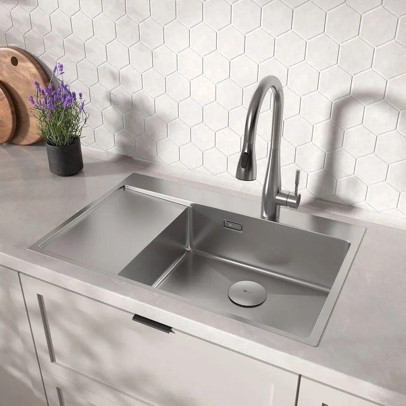 Благодаря конструктивным особенностям крыла, вода быстро стекать в мойку, а возможность установить дополнительные аксессуары, такие как дозаторы для моющих средств или ролл-мат, придаёт ей максимальную функциональность, что способствует более организованному и комфортному кухонному пространству.Преимущества и характеристики кухонных моек из нержавеющей стали серии Ozera: