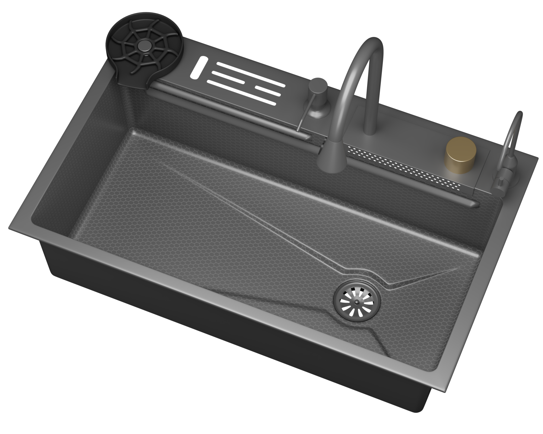 1) Благодаря специальной поверхности мойки "Honey-comb 3D" и ANTI-scratch технологии поверхность защищена от механических повреждений и остается чистой, предотвращая накопление грязи и жира благодаря ANTI-dirty покрытию