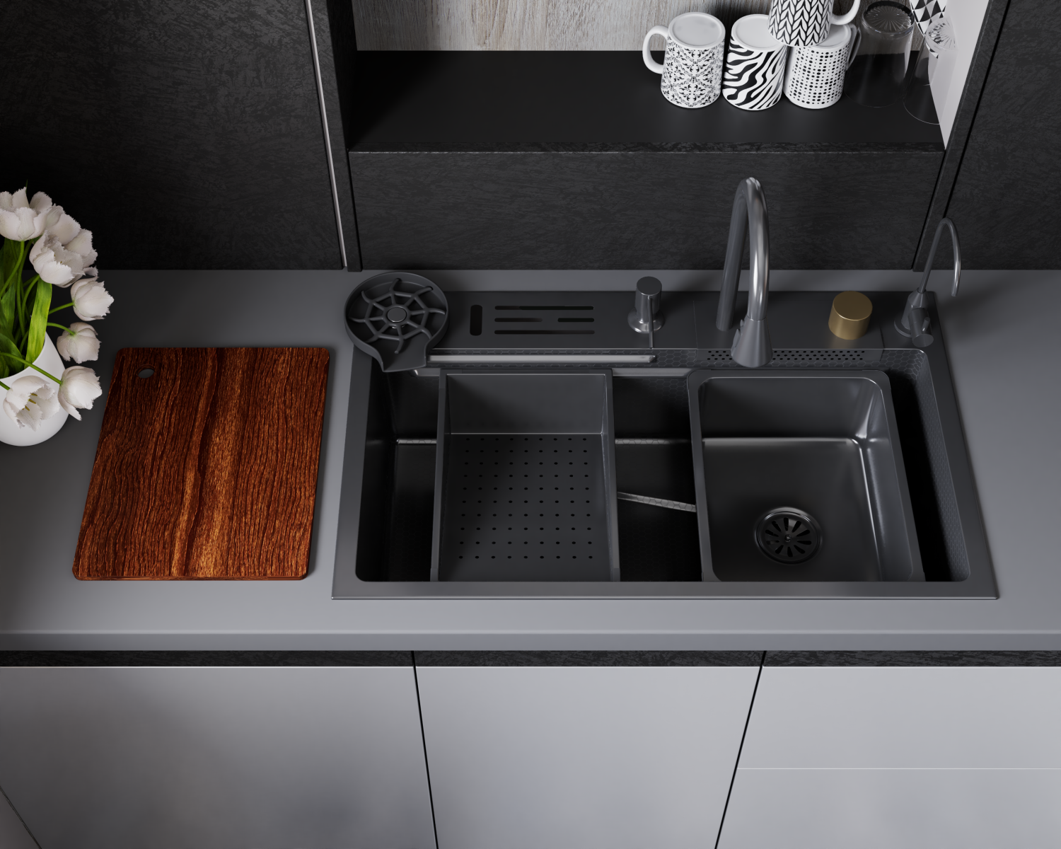 Кухонная мойка многофункц. DQ нерж.сталь матовый серый в комплекте со смесителем и аксессуарами (DKS754606)