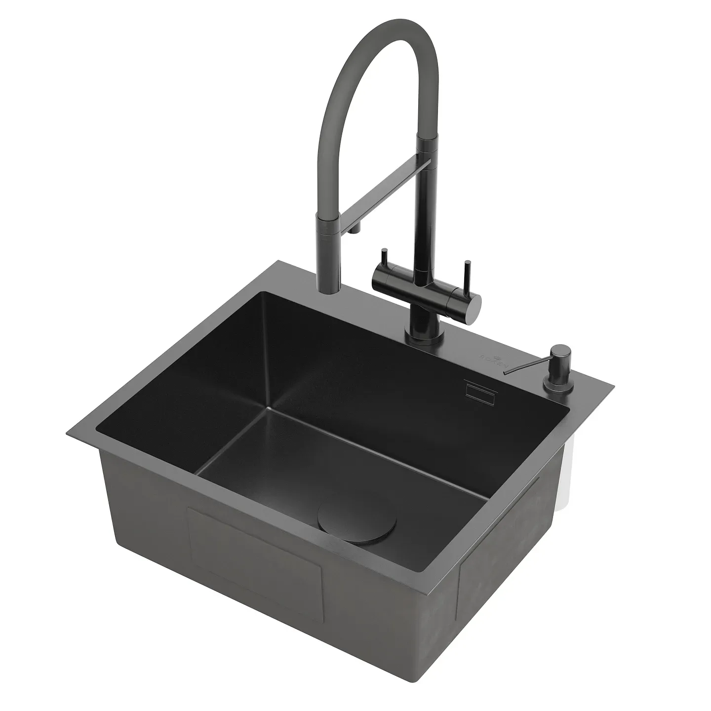 Кухонная мойка Roxen Simple 55 PVD (графит) 55х48 с коландером и дозатором в комплекте. Удобная прямоугольная модель в цвете графит, с глубокой чашей, сочетает в себе стильный современный дизайн и отличные эксплуатационные характеристики. Мойка изготовлена из аустенитной низкоуглеродистой стали марки AISI 304, которая обладает устойчивостью к коррозии, окислению и перепаду температур. Отличные шумопоглощающие характеристики мойки обеспечиваются шумоподавляющим составом Silent Protection и шумопоглощающими пластинами Soft Silence, которые располагаются по всей чаше мойки.