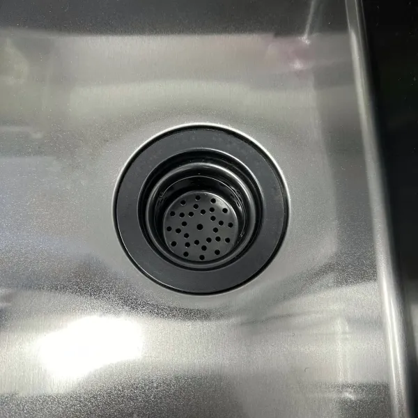 - В мойке сделано 2 заводских отверстия для смесителя и дозатора.