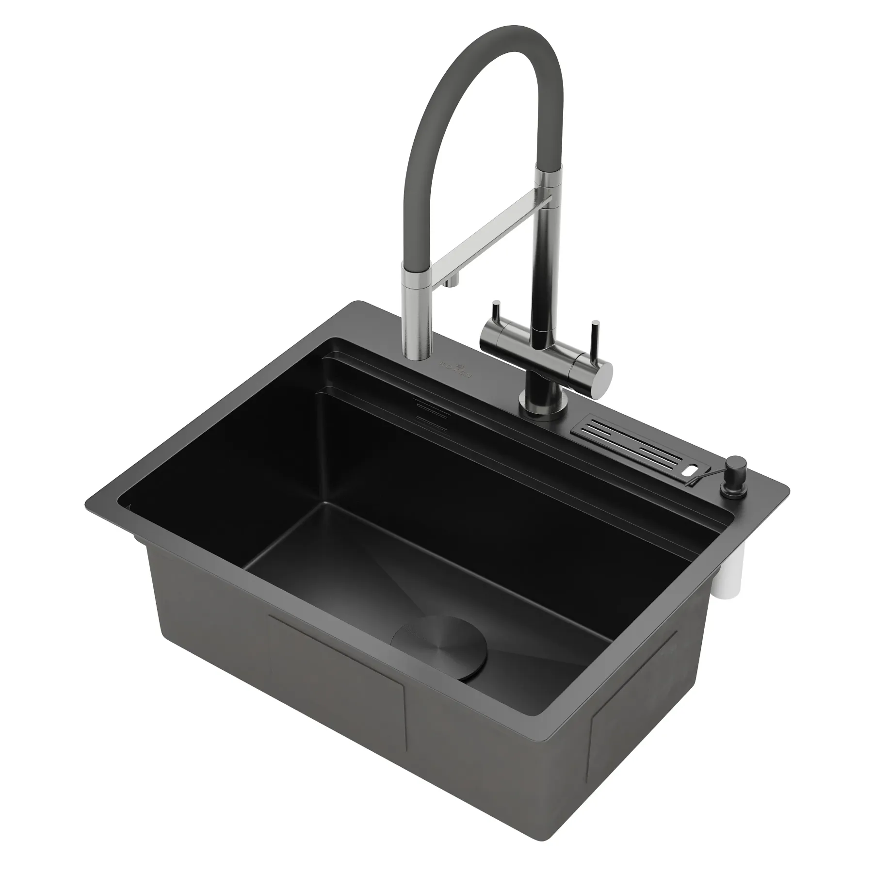 Кухонная мойка Roxen Stage 60 PVD (графит) в комплекте с держателем для ножей, двумя коландерами, разделочной доской и дозатором - это удобная модель с глубокой чашей в цвете графит, сочетает в себе стильный современный дизайн, функциональность и отличные эксплуатационные характеристики. Удобная вместительная чаша дает возможность расположить коландеры на двух уровнях. Держатель для ножей имеет водоотводящую коробку, что поможет ножам всегда оставаться сухими и продлить срок их службы. Мойка изготовлена из аустенитной низкоуглеродистой стали марки AISI 304, которая обладает устойчивостью к коррозии, окислению и перепаду температур. Отличные шумопоглощающие характеристики мойки обеспечиваются шумоподавляющим составом Silent Protection и шумопоглощающими пластинами Soft Silence, которые располагаются по всей чаше мойки.