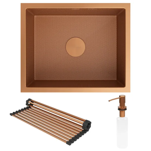 Кухонная мойка RoxenBath Uno 560210-54-BRS PVD (bronze brush текстурная) под столешницу с ролл-матом и дозатором - современная модель премиального сегмента в цвете бронза (bronze brush текстурная) с глубокой прямоугольной чашей, сочетает в себе стильный современный дизайн и отличные эксплуатационные характеристики. Мойка устанавливатеся под столешницу, комплектуется необходимыми креплениями. Изготовлена из аустенитной низкоуглеродистой стали марки AISI 304, которая обладает устойчивостью к коррозии, окислению и перепаду температур. Толщина стали исключает деформацию и обеспечивает долгий срок эксплуатации. Уникальное покрытие Bruch Tech является защитным слоем, устойчивым к истиранию, появлению царапин и механических повреждений. Отличные шумопоглощающие характеристики мойки обеспечиваются шумоподавляющим составом Silent Protection и шумопоглощающими пластинами Soft Silence, которые располагаются по всей чаше мойки.