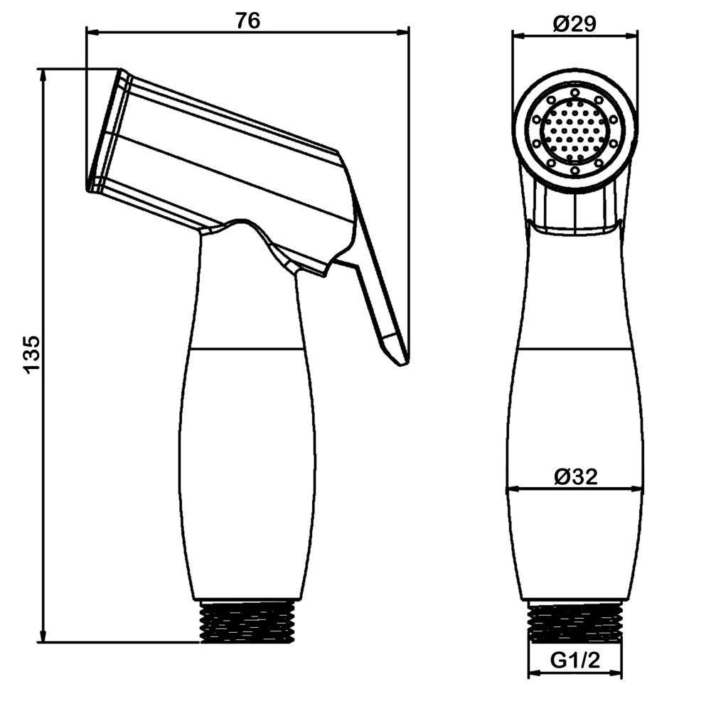 Лейка гигиеническая 2 режима - стандартный и режим наполнения емкостей.Сопло из монополимера стойкого к обрастанию водным камнем. Запорное седло из латуни.Тест от протечек на 5 Bar на 24 часа.Цвет: черный