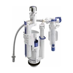Механизм двойного слива Kerasan 751390 хромKerasan 751390 Механизм слива одинарный для низкого бачка, без трубы, без подводки, цвет хром. Кнопка слива сверху.