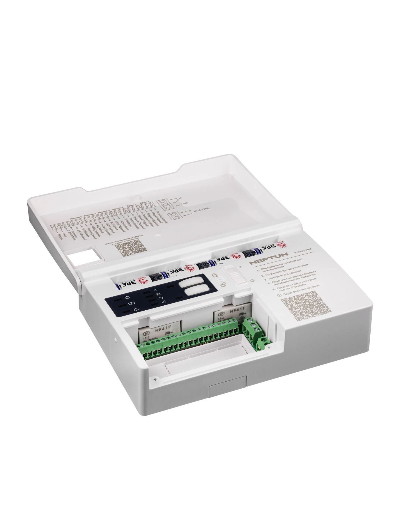 Предназначен для обработки сигналов от датчиков контроля протечки воды и выдачи управляющего сигнала на исполнительное устройство, перекрывающее воду.