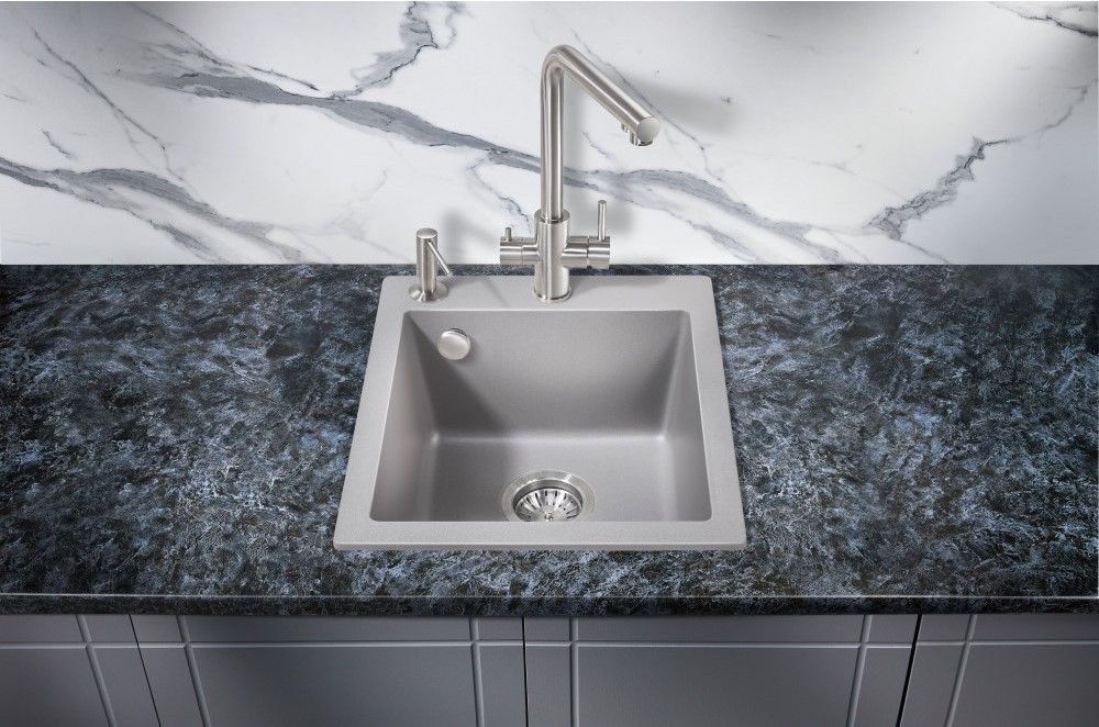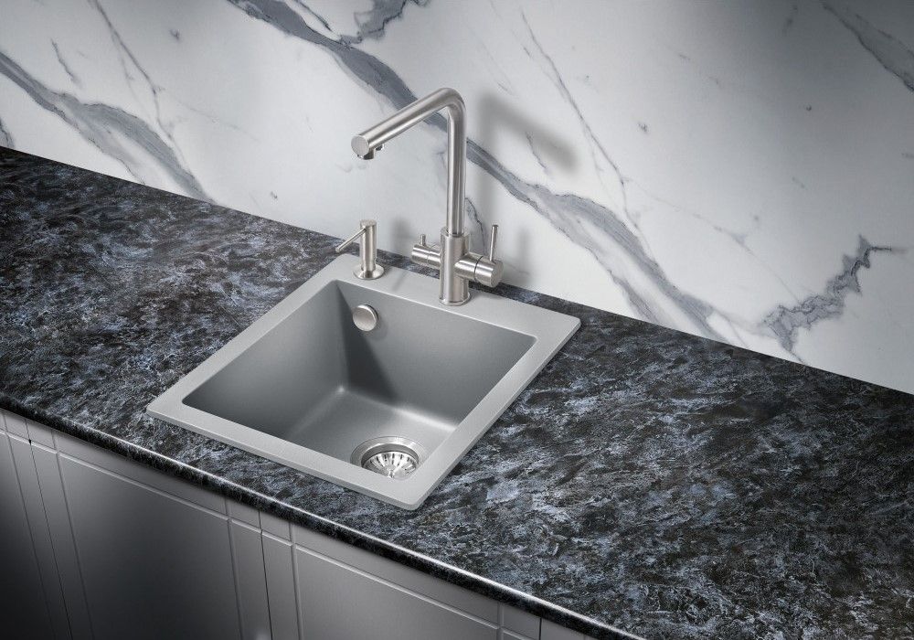 Кухонные мойки MILACIO — эталон стиля и качества даже для самых искушенных ценителей дизайнерской сантехники.Каменная врезная прямоугольная мойка для кухни MILACIO Murcia 42 Cuarzo (MC.77043), выполненная в цвете «серый металлик» с матовой текстурой, воплотила в себе лучшие особенности: безупречный вид, лаконичный дизайн, прочность конструкции и комфортное использование. Раковина изготовлена из высококлассного кварцевого композита — смеси частиц кварца и полиэфирных смол — красивого и современного материала, обладающего уникальной прочностью. Искусственный камень устойчив к любым воздействиям — царапинам, ударам, высоким и низким температурам (не боится кипятка и горячей посуды), бытовой химии, пищевым красителям, свету и загрязнению. Даже спустя годы изделие не потеряет цвет и форму и будет должным образом выполнять свои функции. Кухонная кварцевая мойка достаточно компактна, чтобы лучшим образом использовать пространство в небольшой комнате. Размер компенсируется глубокой чашей квадратной формы — в нее поместятся сразу несколько комплектов посуды. Благодаря правильной геометрии мойки капли не разбрызгиваются в стороны, а специальное водоотталкивающее покрытие не дает воде растекаться по поверхности, что сводит загрязнение к минимуму.При этом уход за раковиной достаточно прост: пятна легко убираются чистящими средствами — без подтеков и разводов.