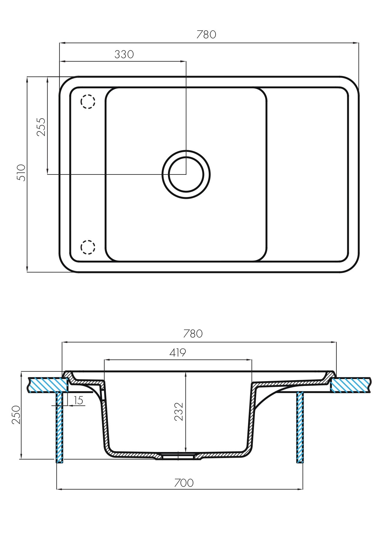 Отверстия под смеситель:нет