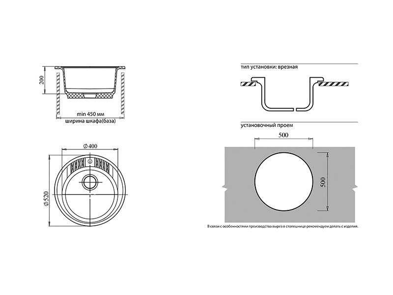 Установочный проем: 500 мм
