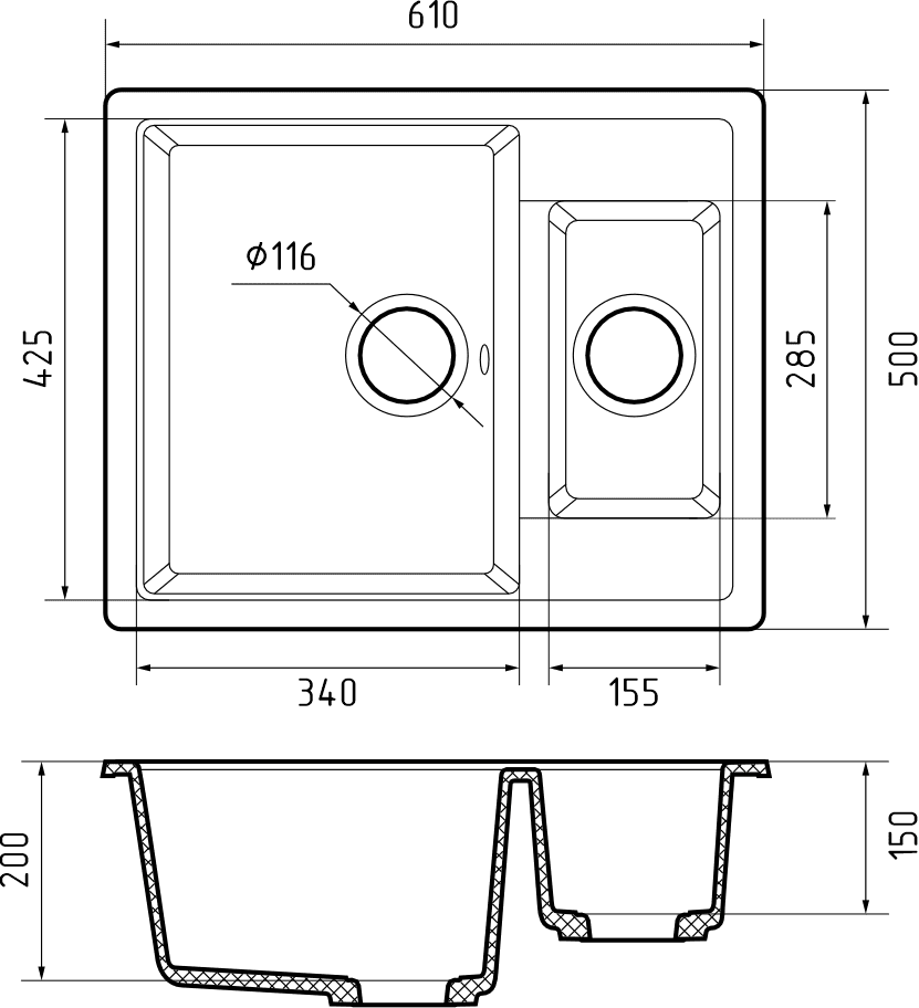 Мойка кухонная GranFest CLASSIC Q-610K серый