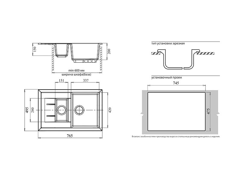 Установочный проем: 745*475 мм