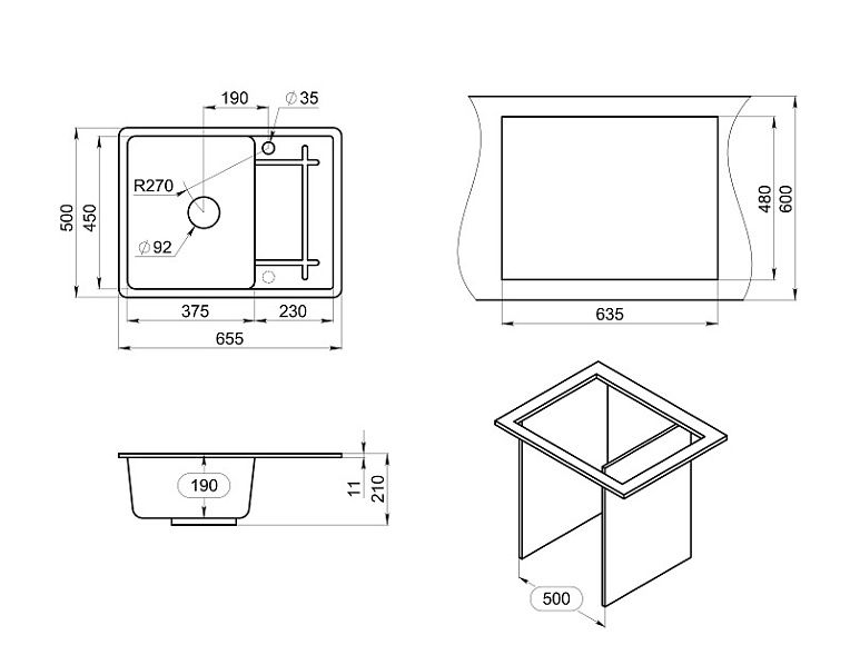 Мойка кухонная Granula 6501, БАЗАЛЬТ
