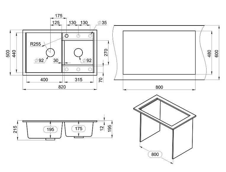 Мойка кухонная Granula 8201, БАЗАЛЬТ