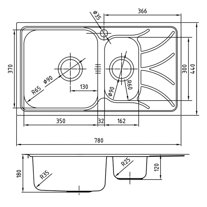 Материал: Нержавеющая сталь;размеры: 780x440x180;комплектация: уплотнительная прокладка, крепления;цвет Глянцевый хром.Врезной тип монтажа;гарантия: 15 лет;1,1/2 чаши;крыло справа