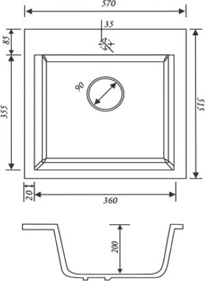 Габариты (ШхД): 57 x 51,5 см. Глубина чаши: 20 см.