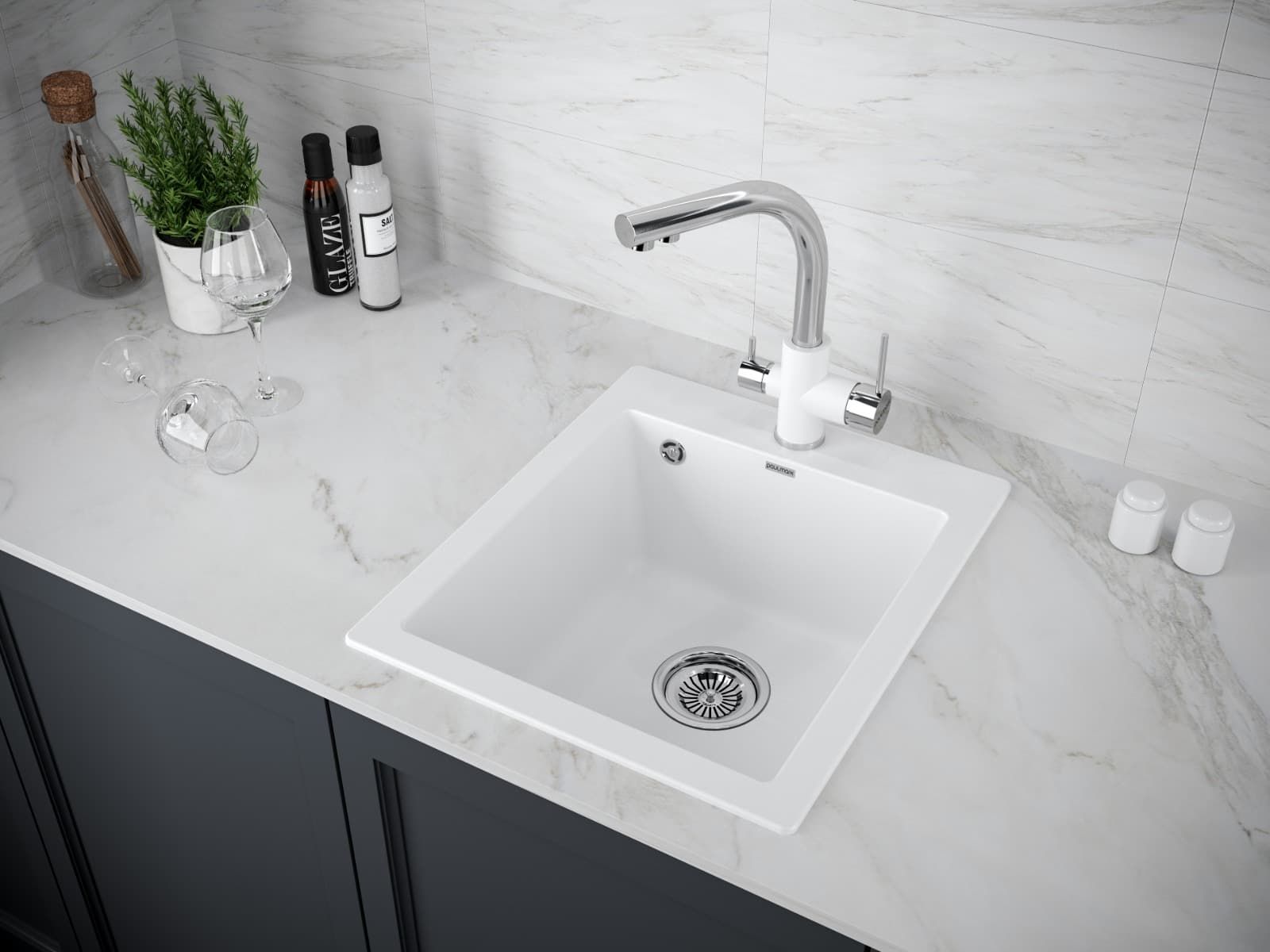 Материал мойки не нужно герметизировать, и, поскольку он не пористый, то он максимально устойчив к окрашиванию.Компактный размер