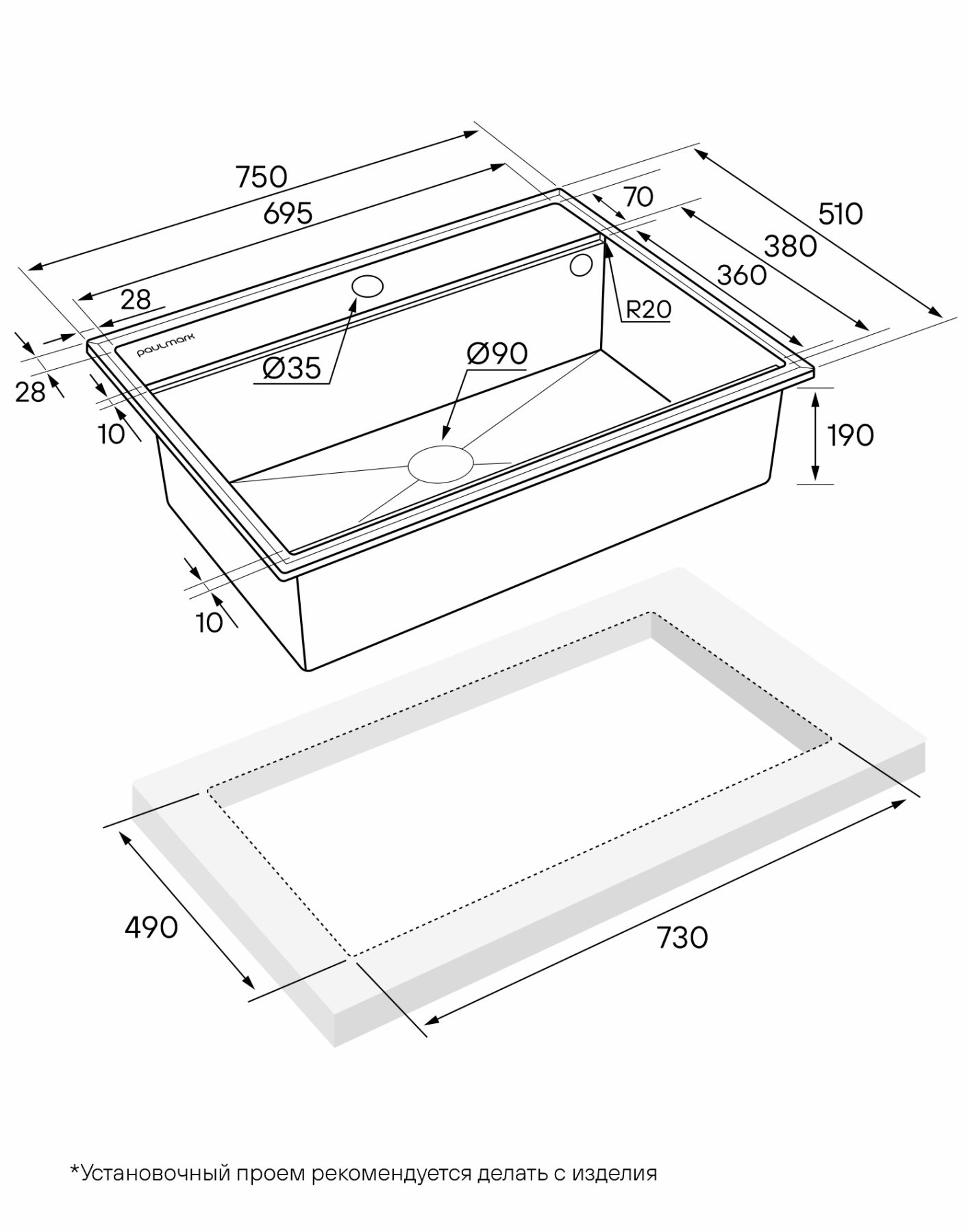 Материал мойки устойчив к механическим повреждениям, а также выдерживает температуру до 180 градусов.Однородная структура цвета