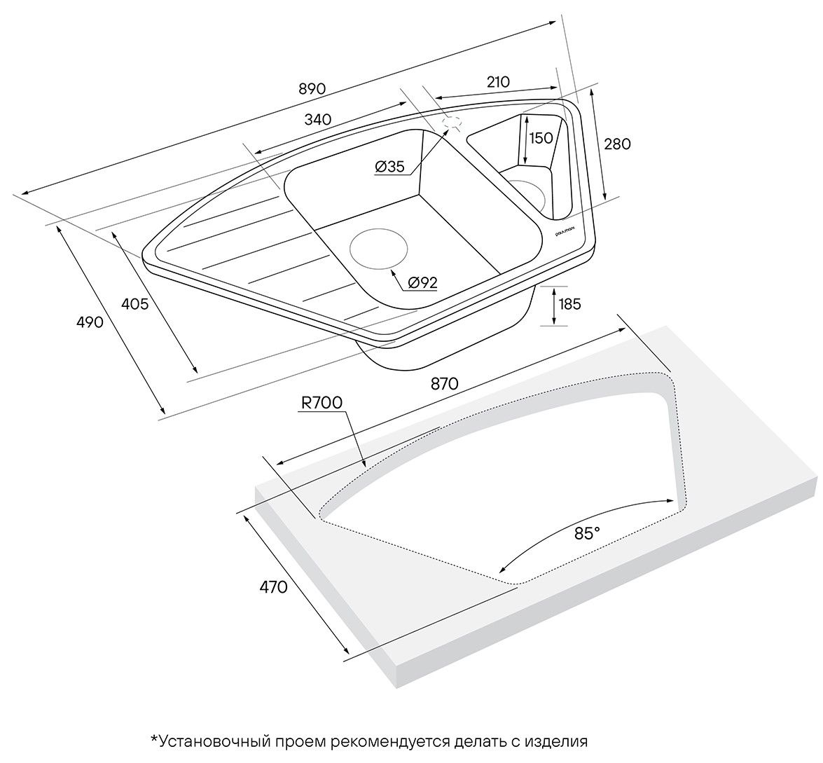 Материал мойки экстремально устойчив к механическим повреждениям, а также обладает повышенной термоустойчивостью и пожаробезопасностью.