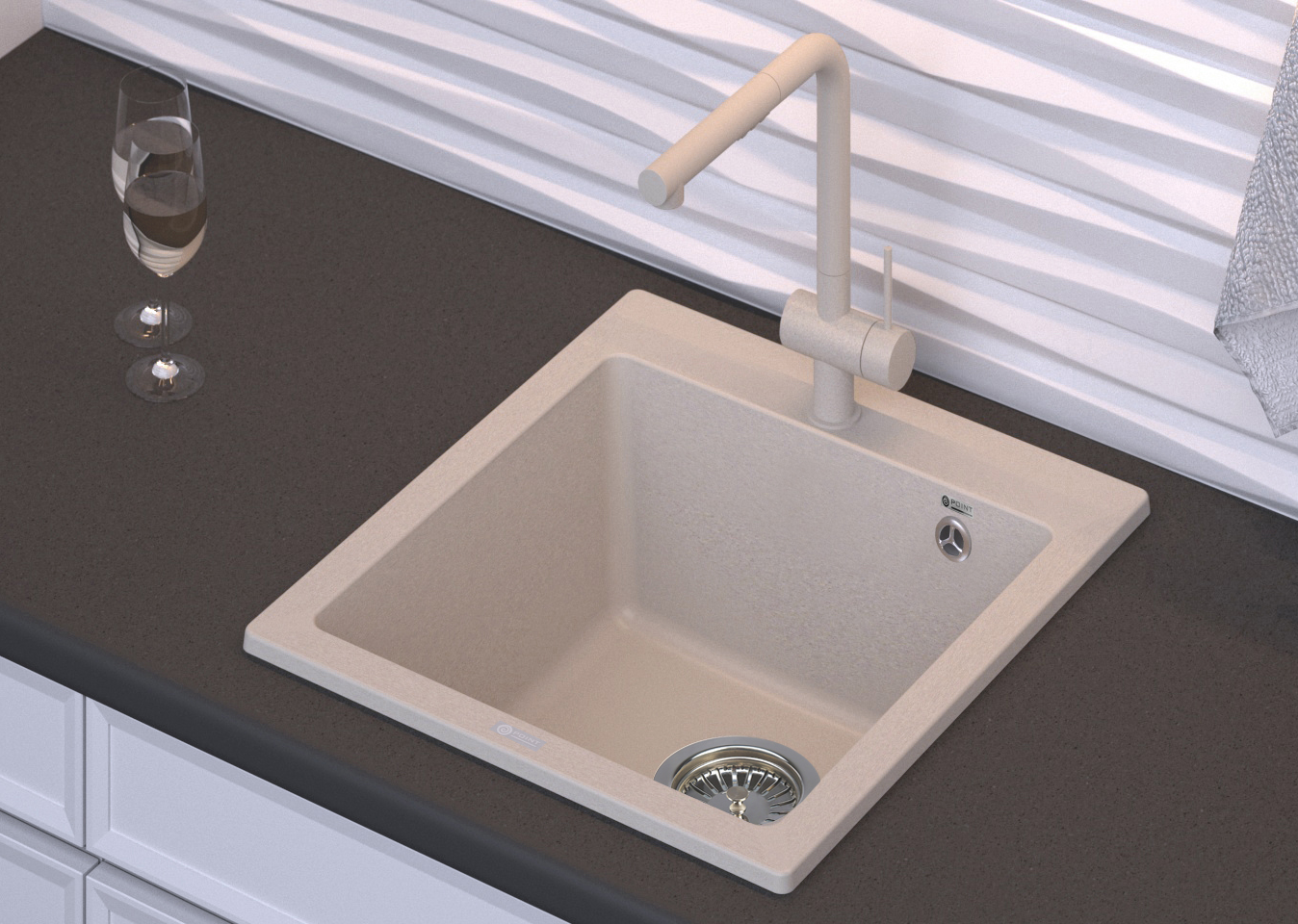 Мойка кухонная Point Моко PN3006BG 47 см светло-бежевыйКомпактная и вместительная мойка с функциональной прямоугольной чашей, оптимальна для кухни любого размера. Поверхность мойки устойчива к механическим повреждениям. При установке мойки возле стены или пенала необходимо учитывать ширину пристенного кантаЦвет - светло-бежевый