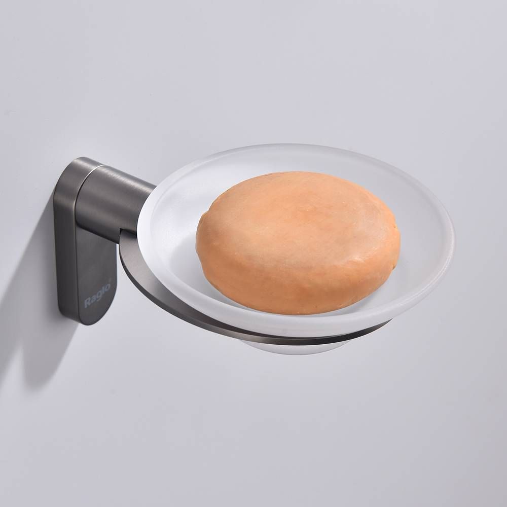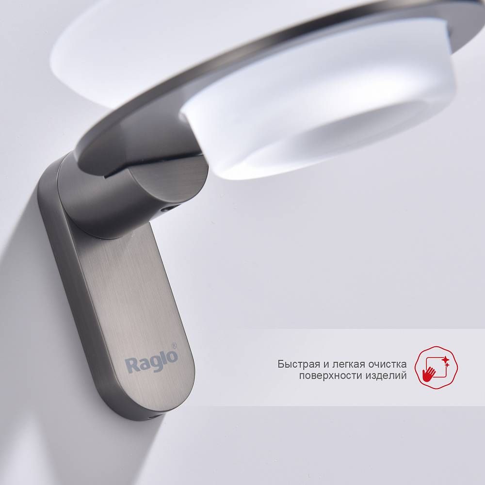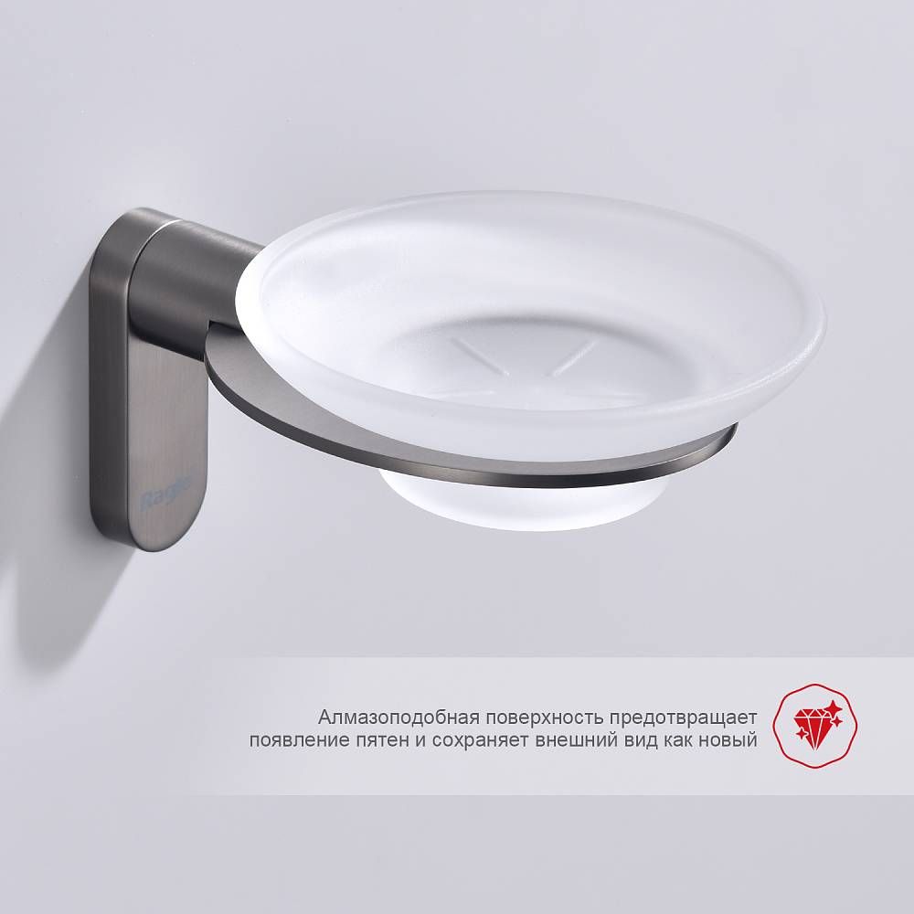 Raglo R300.02.06 Мыльница стеклянная с держателем. Форма округлая, цвет - черный, полуматовое покрытие. Крепление в комплекте.