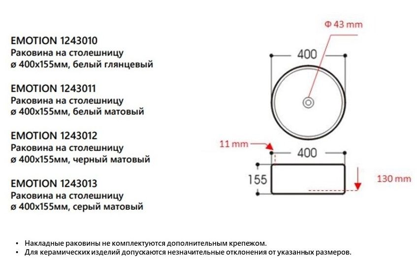 Накладная раковина Avimano Emotion 1243013 40см серый матовый купить
