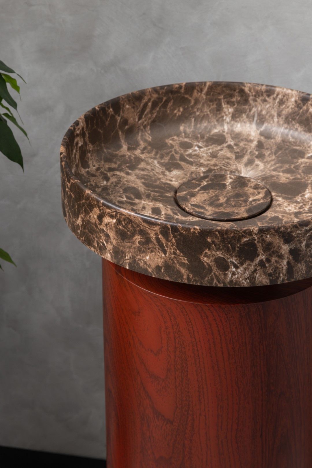 Накладная раковина с пьедесталом золото Armadi Art Sole Corian 801-ED+801-Base-Rwood Emprador/Red Wood купить