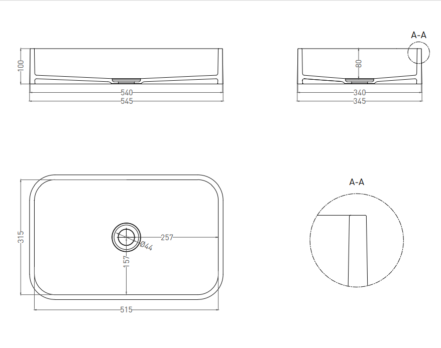Накладная раковина Salini Callista 01 S-Sense 1101104GRH 55см RAL снаружи