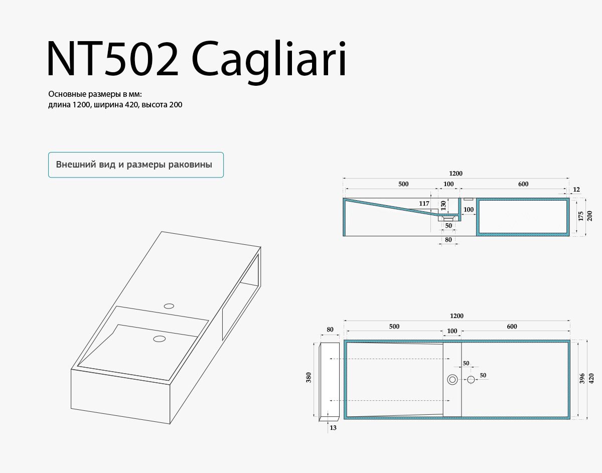 Накладная раковина-столешница NT Bagno Cagliari Left NT502 120см белый матовый купить