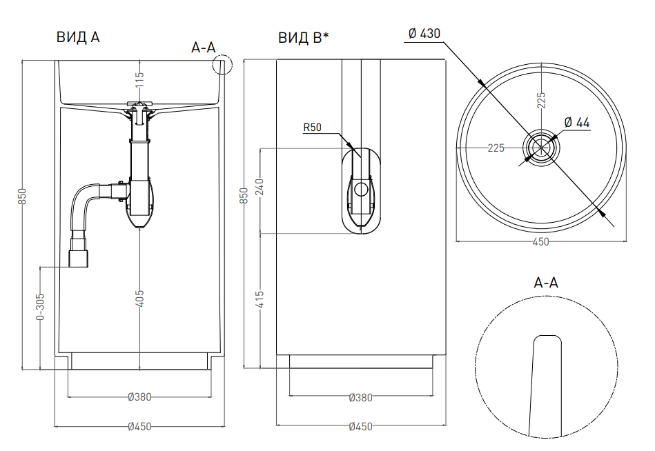 Раковина цилиндрической формы ARMONIA в напольном и накладном исполнении — универсальное решение для любого санузла. В версии TOP модель комплектуется полочкой для установки смесителя, которую по желанию можно использовать и для туалетных принадлежностей. Прямая или скруглённая форма раковины соответствует актуальным тенденциям дизайна и делает выбор беспроигрышным. Напольные версии могут быть установлены со сливом как в пол, так и в стену.Конструкция раковин ARMONIA и ARMONIA TOP предусматривает изготовление выреза в задней части изделия.К этой раковине подходят донные клапаны 502 (Click-Clack) и 602 (фиксированный). Преимущества
