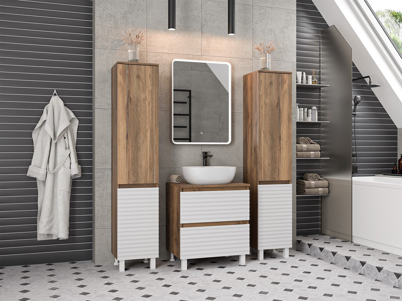 Напольная тумба под раковину – это не просто элемент мебели, но настоящее произведение искусства, которое сочетает в себе функциональность и изысканный дизайн. Изготовленная из высококачественных материалов, она гарантирует долговечность и устойчивость к воздействию влаги.Удобная система хранения позволяет размещать все необходимое для гигиенических процедур, а её продуманные размеры отлично вписываются даже в небольшие помещения. Стильные ручки и элегантные фасады придают тумбе особый шарм, а разнообразие цветовых решений позволит выбрать модель, соответствующую любому интерьеру – от классического до модерн.Мягкие линии и непринужденные формы делают тумбу неотъемлемой частью ванной, превращая её в любимое место для отдыха. Совершенное сочетание эстетики и практичности позволяет создать гармоничный и стильный интерьер, что делает напольную тумбу для ванной комнаты идеальным аксессуаром для любого дома.