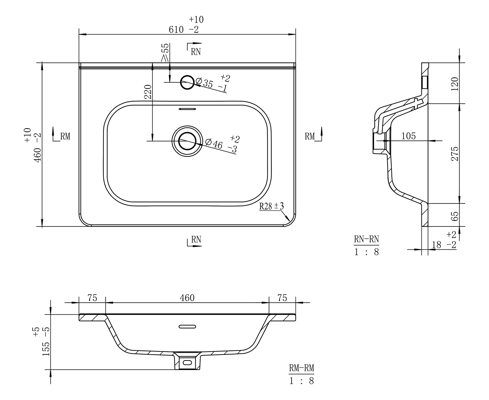 В комплекте с тумбой идёт раковина ONDA 60 см