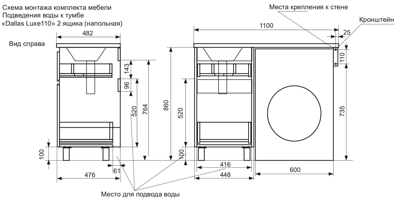 Напольная тумба под раковину Эстет Dallas Luxe ФР-00001964 Л/П 110см два ящика белый