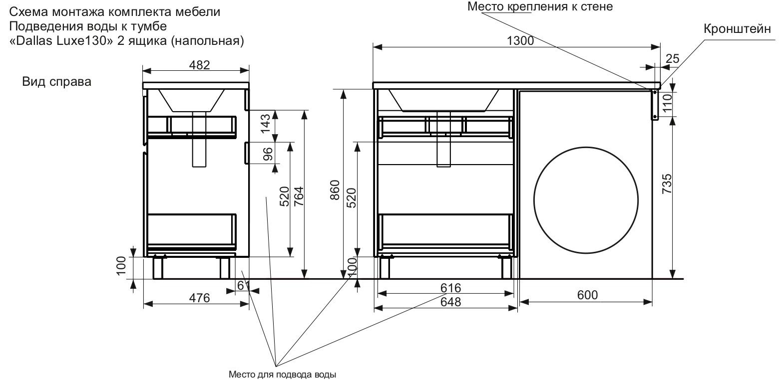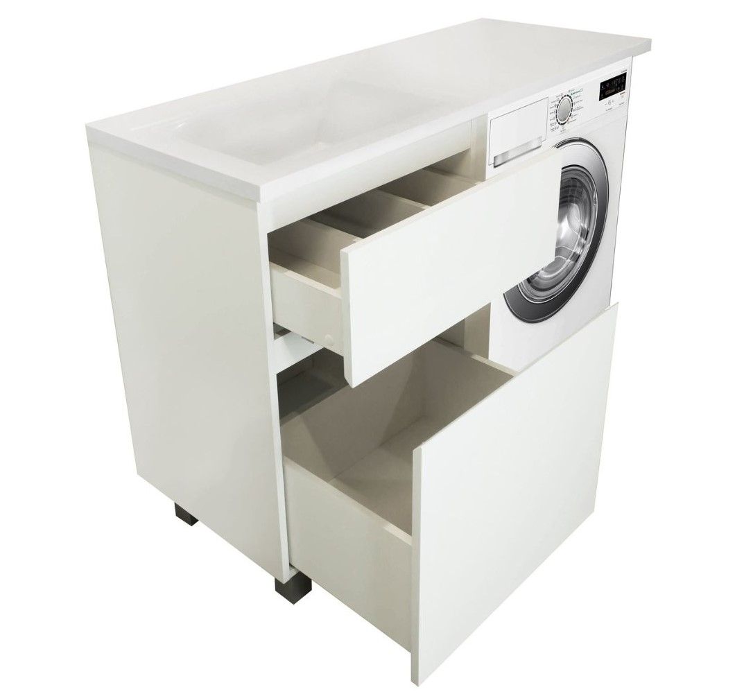Коллекция мебели для ванной комнаты Dallas Luxe покоряет своей удивительной простой и функциональностью. Стильная лаконичная тумба, укомплектована раковиной из литьевого мрамора с удобной чашей. Стиральная машина устанавливается под столешницей, за счет чего экономит место в ванной комнате. В тумбе имеются два ящика. Нижний ящик тумбы – широкий и вместительный – предназначен для крупных предметов, а в верхнем имеется специальная организация пространства, позволяющая хранить мелкие вещи.