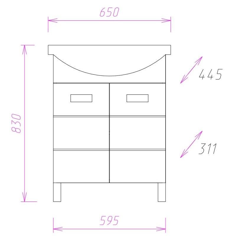 Размеры тумбы без учета раковины и ножек: 59x31x68 см.