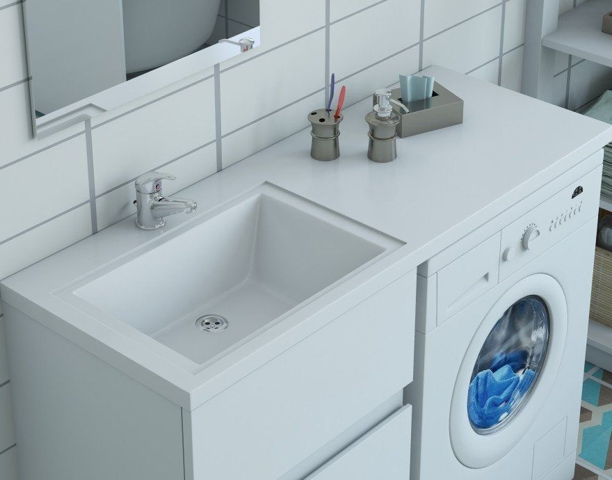 Коллекция мебели для ванной комнаты Dallas Luxe покоряет своей удивительной простой и функциональностью. Стильная лаконичная тумба, укомплектована раковиной из литьевого мрамора с удобной чашей. Стиральная машина устанавливается под столешницей, за счет чего экономит место в ванной комнате. В тумбе имеются два ящика. Нижний ящик тумбы – широкий и вместительный – предназначен для крупных предметов, а в верхнем имеется специальная организация пространства, позволяющая хранить мелкие вещи.