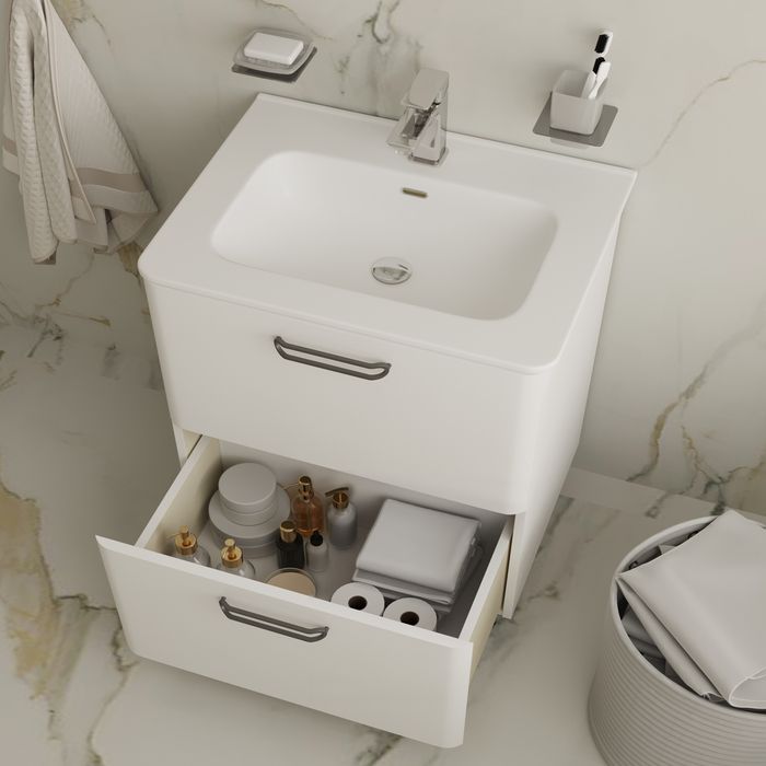 Входящий в комплект умывальник (арт. 0106000i28) из качественного фарфора отличается высокой прочностью и простотой в уходе – он не задерживает загрязнения и неприятные запахи, надолго сохраняя первозданную белизну.