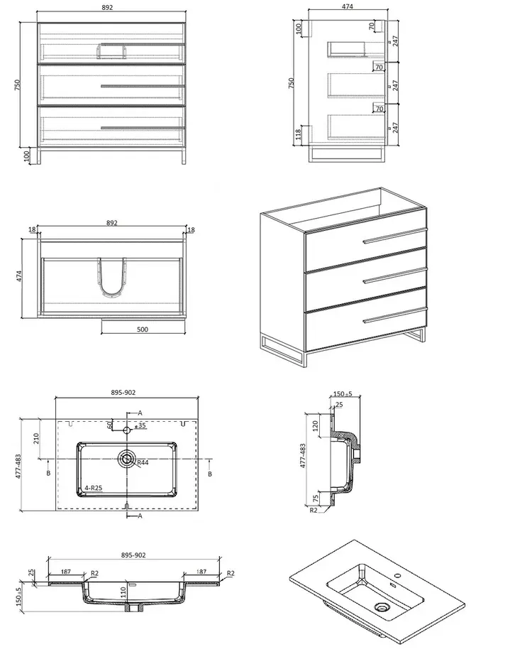 - Дизайн - минимализм, идеальное сочетание дизайна из трех! ящиков