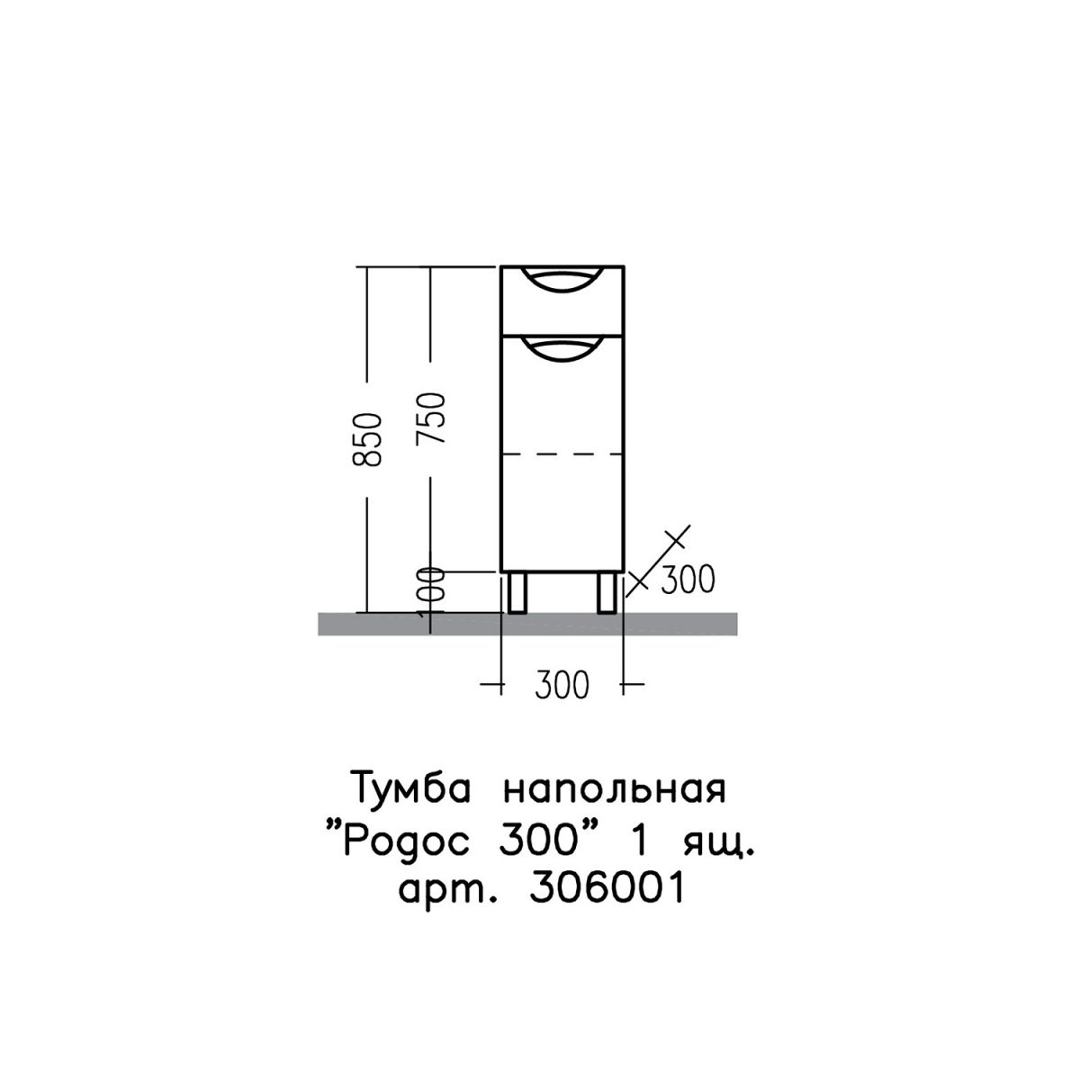 Комплектация: Ручка хром - 2, выдвижной ящик - 1, на дверке петли плавного закрывания, ножка хром - 2, ножка пластик - 2 Тумба напольная СаНта Родос 30 с 1 ящиком напольная предназначена для хранения различных мелочей в ванной комнате. Комод в ванную комнату изготовлен из влагостойких материалов, фасад и столешница комода для ванны изготовлена из МДФ, корпус из влагостойкого ЛДСП. Комод для ванной комнаты оснащен ящиком полного выдвижения ( без плавного закрывания). Ножки у комода для ванны идут в комплекте. Купить комод для ванной комнаты вы можете оформив заказ у нас на сайте. Также вы можете подобрать к комоду тумбу с раковиной из коллекции Родос.