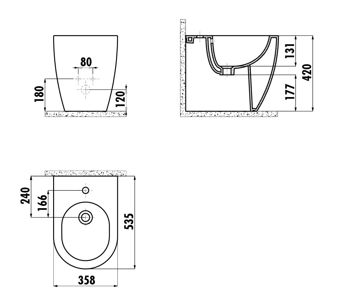 Creavit Free FE500-00CB00E-0000 Биде напольное (белый глянцевый), пристенное. С переливом, одно отверстие для смесителя готово.