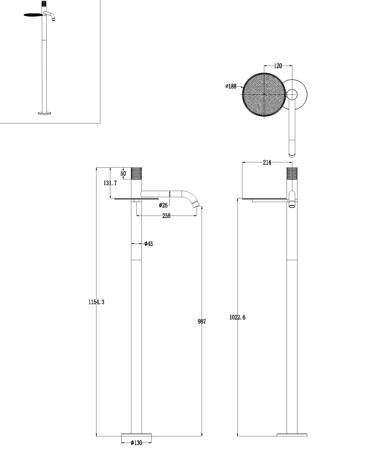 Напольный смеситель для раковины Boheme Stick Touch 120-MG.2 золото матовое