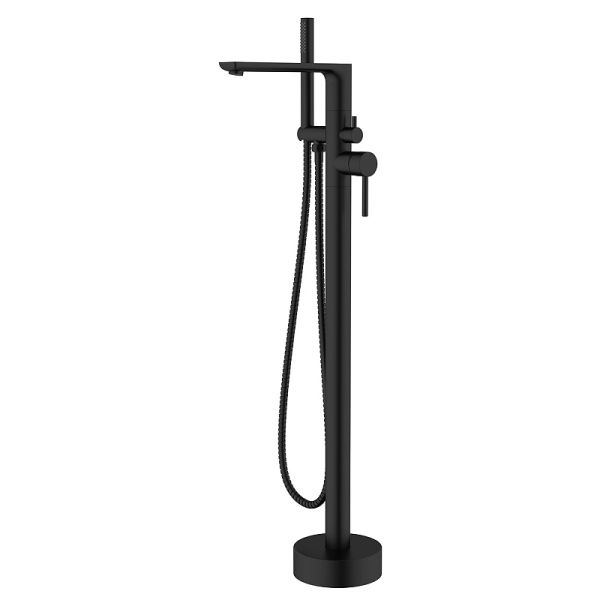 Смеситель для отдельно стоящей ванны Azario Rimini напольный, керамический картридж, шланг 150 см, черный матовый