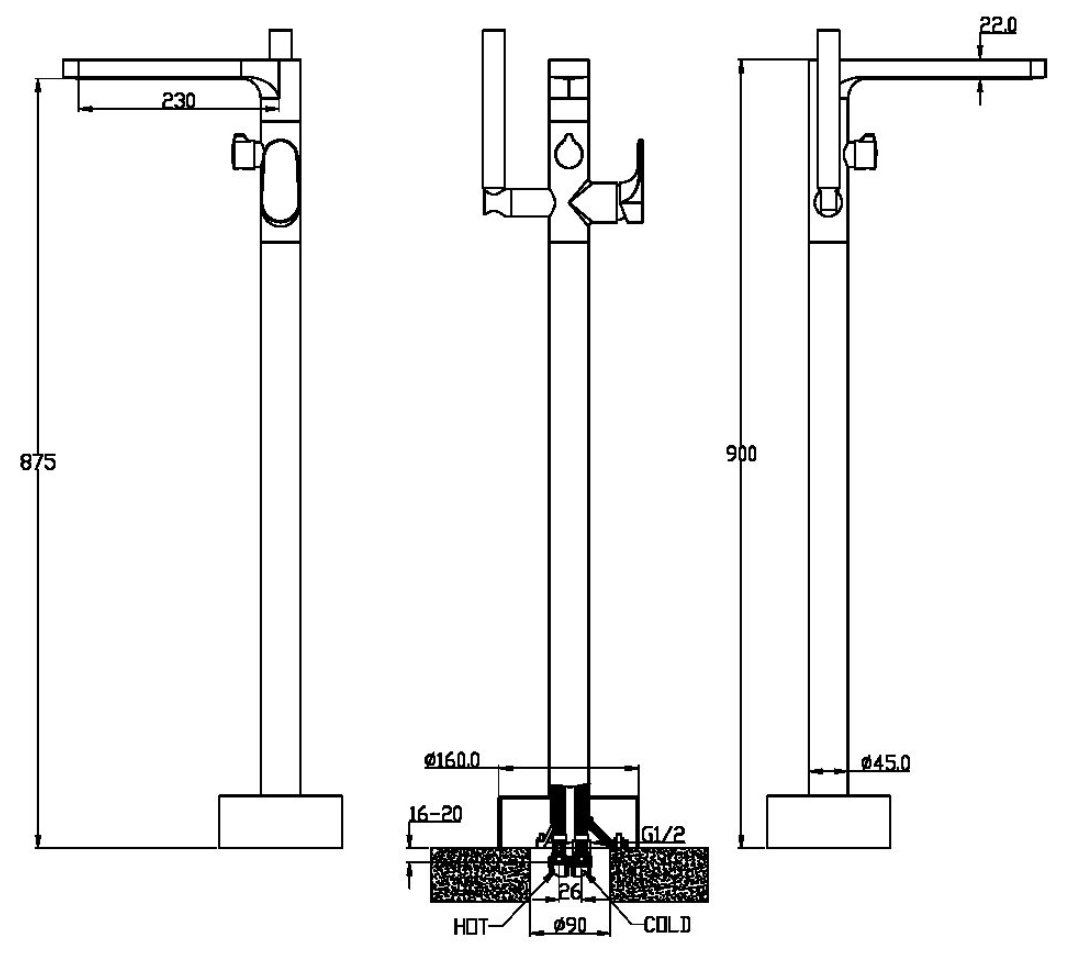 Смеситель для ванны Boheme Spectre 459-B напольный.Характеристики:Цвет: черный.